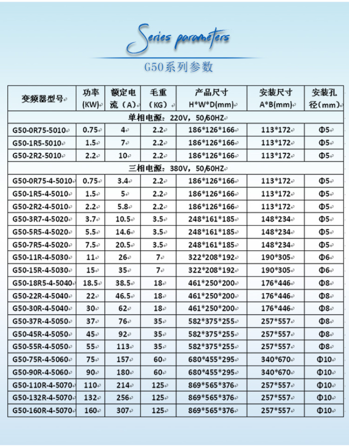 8. 提供多達50種的故障保護功能 。能在各種異常使用情況下,快速可靠的自動停止輸出,從而保護電機或變頻器自身過電流可能導致的損壞。